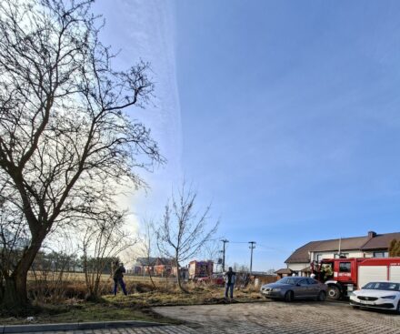 Ogromny pożar zakładu stolarskiego w Nowych Lipinach. Nad miejscowością unosił się gęsty słup czarnego dymu.