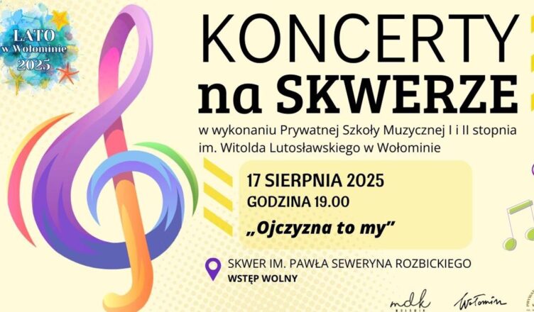 Koncert „Ojczyzna to my” odbędzie się 17 sierpnia 2025 r. o godzinie 19:00 na skwerze im. Pawła Seweryna Rozbickiego – u zbiegu ulic Kościelnej i Sikorskiego. Będzie to muzyczna refleksja nad znaczeniem słów „ojczyzna” i „pamięć”, przedstawiona w artystycznej interpretacji młodych muzyków.