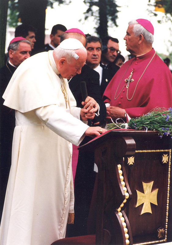 13 czerwca 1999 roku o godz. 18.13 helikopter z Ojcem Świętym wylądował w Radzyminie. Kroki swoje skierował na Cmentarz Żołnierzy Polskich z 1920 roku. Powitał ostatnich żyjących żołnierzy tej wojny. Poproszony o wygłoszenie nauki powiedział: – Prosimy o słowo – słusznie. Chociaż na tym miejscu najbardziej wymowne jest milczenie, to przecież czasem potrzebne jest także słowo. I to słowo chcę tu pozostawić. Wiecie, że urodziłem się w roku 1920, w maju, w tym czasie, kiedy bolszewicy szli na Warszawę. I dlatego noszę w sobie od urodzenia wielki dług w stosunku do tych, którzy wówczas podjęli walkę z najeźdźcą i zwyciężyli, płacąc za to swoim życiem.