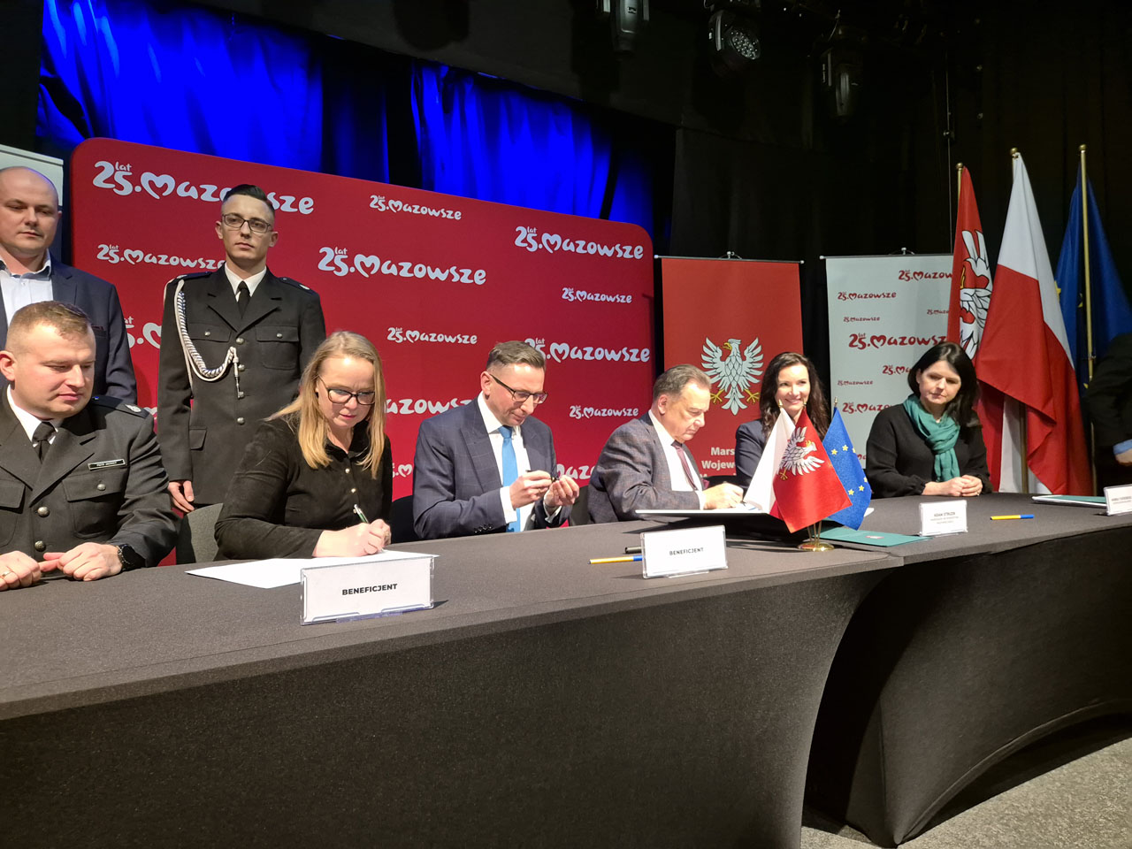 Ruszyło rekordowe wsparcie unijne dla mazowieckich OSP. Trafi do nich 188 wozów strażackich dofinansowanych przez Unię Europejską. Aż 253 mln zł z programu Fundusze Europejskie dla Mazowsza przyznał zarząd województwa. We wtorek umowy z władzami gmin Tłuszcz, Klembów, Wołomin i Radzymin oraz prezesem OSP w Markach podpisali marszałek Adam Struzik i radna województwa Anna Brzezińska. W spotkaniu wzięła udział Monika Tchórznicka, zastępca dyrektora ds. Europejskiego Funduszu Rozwoju Regionalnego w Mazowieckiej Jednostce Wdrażania Programów Unijnych. Wsparcie dla jednostek OSP z powiatu wołomińskiego to 4,4 mln zł.