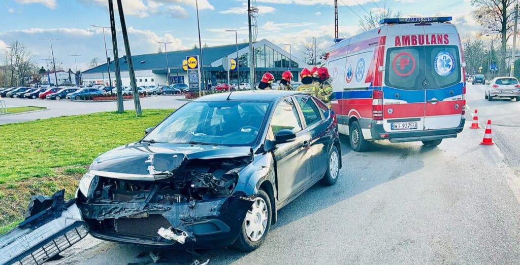 Zderzenie trzech osobówek w Sochaczewie. Dwie osoby trafiły do szpitala.
