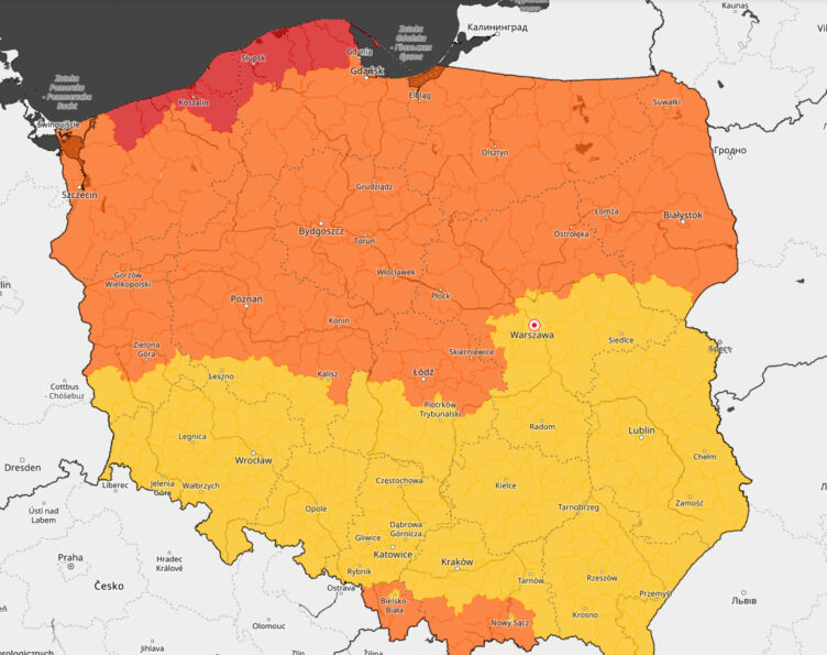 Uwaga! Instytut Meteorologii i Gospodarki Wodnej wydał ostrzeżenie m.in. dla powiatu wołomińskiego.