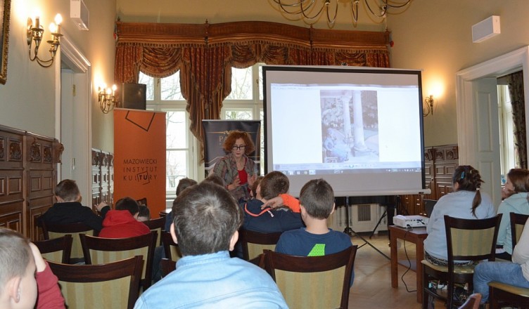 Zajęcia poprowadziła kuratorka wystawy Grażyna Krzyżanowska, która opowiedziała o aktualnej ekspozycji, w kolejnym zaś etapie zaprezentowała dzieciom slajdy prezentujące twórczość Jacka Malczewskiego. W ostatniej części pałacowej lekcji, odbyły się warsztaty, podczas których uczniowie pod okiem prowadzącej oddali się pracy twórczej.