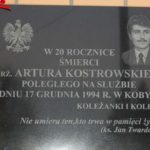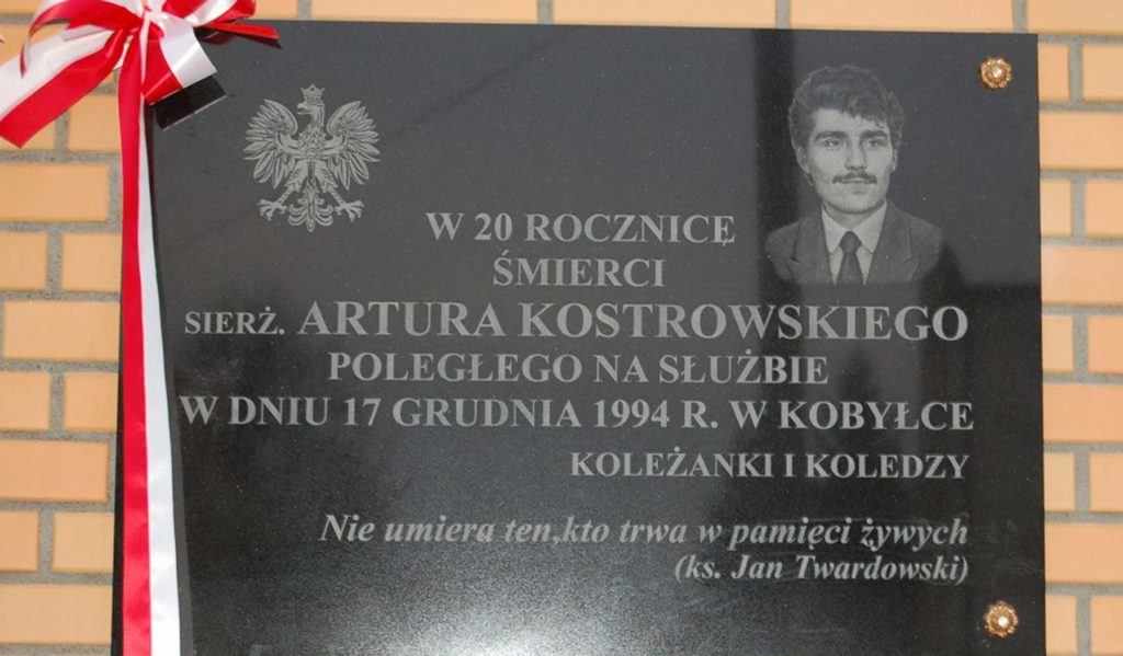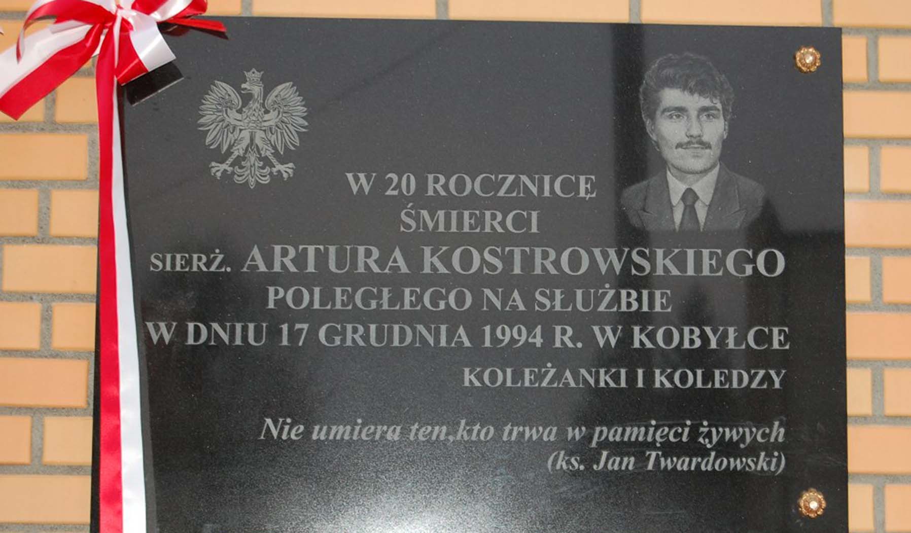 17 grudnia 2014r z inicjatywy społecznej emerytowanych policjantów na ścianie frontowej budynku Komisariatu Policji w Kobyłce w 20 rocznicę tragicznej śmierci nastąpiło uroczyste odsłonięcie tablicy pamiątkowej poświęconej sierżantowi Arturowi Kostrowskiemu. Uroczystość poprzedzona została mszą świętą która odbyła się w Bazylice Świętej Trójcy w Kobyłce.