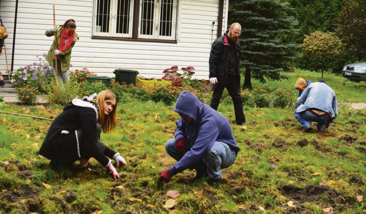 Grabienie liści i wyrównywanie terenu zoranego przez często pojawiające się tu dziki było okazją to wspólnego spędzenia czasu:, nawiązywania nowych znajomości, radosnych zabaw i śmiechu oraz ciekawych rozmów. Pracę zwieńczył wspólny posiłek, sadzenie drzewek i robienie pamiątkowych zdjęć.