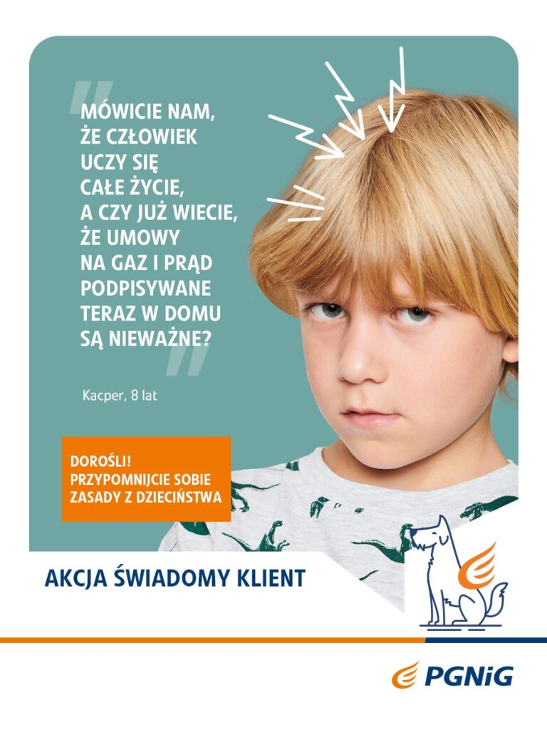 Ponad dwa mln klientów PGNiG korzysta każdego dnia z elektronicznego Biura Obsługi Klienta. Spółka odnotowała podobną liczbę pobrań aplikacji mobilnej. Blisko 120 tys. klientów zawarło z PGNiG umowę online, bez wychodzenia z domu. Dlatego w kampanii PGNiG pojawiają się spoty ostrzegające nie tylko przed nieuczciwymi sprzedawcami krążącymi od domu do domu, ale także dotyczące ostrożności w sieci. W nowej edycji występują dzieci, które przypominają dorosłym – swoim rodzicom i dziadkom – by nie dali się oszukać nieuczciwym sprzedawcom, podszywającym się pod przedstawicieli spółki. Spoty nawiązują do zasad, które dorośli wpajają dzieciom, ale sami często się do nich nie stosują. Na przykład Jacek, 10 lat, wskazuje: ?Mówicie nam, żeby nie rozmawiać z nieznajomymi, a sami bez zastanowienia podajecie obcym nawet swój numer pesel?.