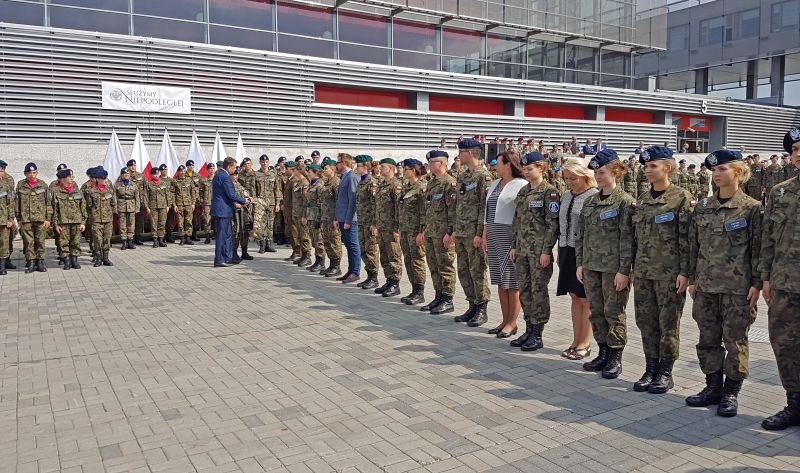 Zachęcam młodych ludzi, żeby uczyli się w klasach mundurowych. Zapewne część uczniów wybierze Wojsko Polskie. Będzie służyć na rzecz naszej ojczyzny„, zwrócił się do młodzieży w swoim wystąpieniu szef MON – Mariusz Błaszczak.