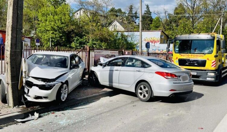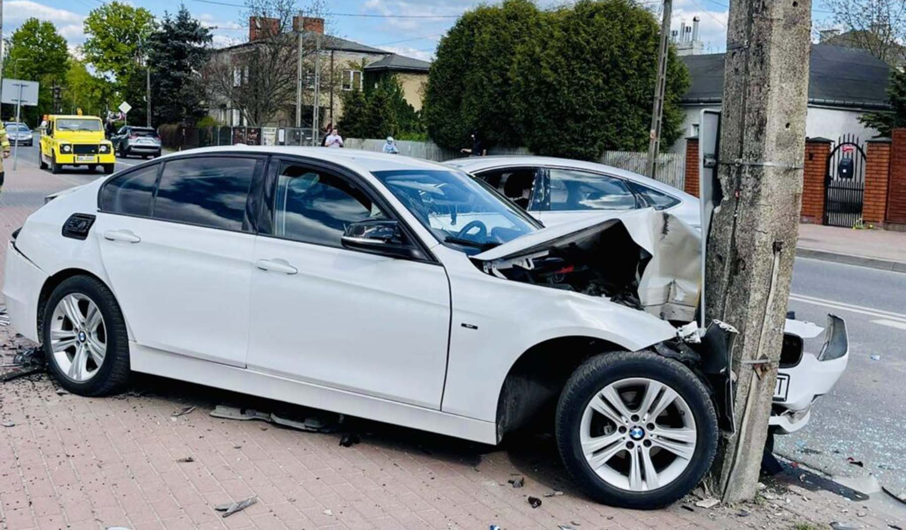 Oba pojazdy siłą rozpędu zatrzymały się dopiero na betonowym słupie. W stojącym aucie była tylko pasażerka, kierowca wyszedł na chwilę do sklepu, kiedy wrócił zobaczył dwa rozbite na latarni samochody. Na miejsce szybko ruszyły służby ratunkowe; straż pożarna PSP i OSP Wołomin, policja oraz dwie karetki pogotowia. Interwencji medycznej wymagała młoda dziewczyna z BMW i sprawca wypadku. Oboje z ogólnymi obrażeniami zostali odwiezieni do szpitala. Z ustaleń policji wynika, że kierowca Hyundaia i40 był pod wpływem alkoholu, a w wydychanym powietrzu miał około 1,5 promila. Szczegóły ustalają teraz technicy z wołomińskiej komendy. Zdarzenie spowodowało spore utrudnienia. Ruch na Armii Krajowej odbywał się wahadłowo. Rozbite wraki z jezdni pomogła usunąć firma Auto Pomoc – Zawadzki.