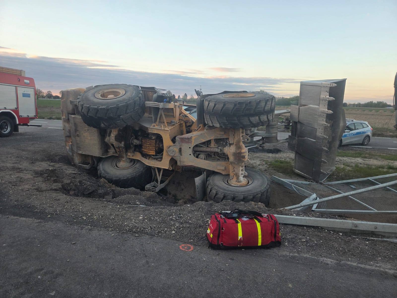 Do zdarzenia doszło w piątek, 24 kwietnia, po godzinie 18:00 w miejscowości Pilitowo (gmina Płońsk), na drodze serwisowej w pobliżu 124. kilometra trasy S7. Na miejsce skierowano służby ratunkowe, które zastały przewróconą na bok ładowarkę marki Volvo.