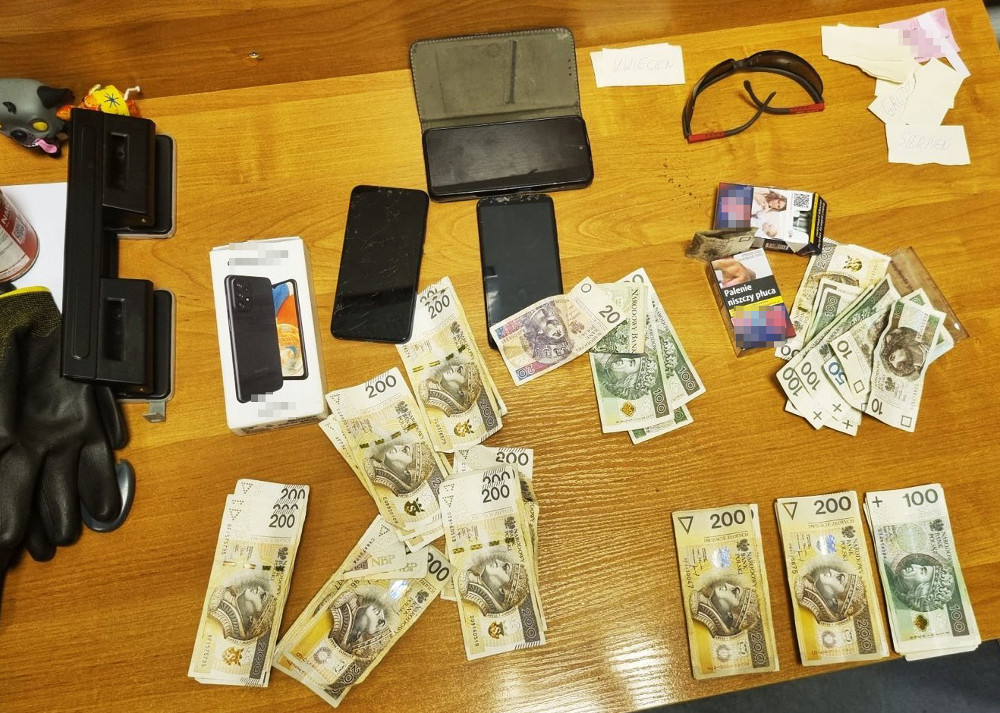 Kryminalni szczegółowo skontrolowali mazdę. W środku leżały puste butelki po alkoholu. W bagażniku znaleźli plecak, w którym był słoik z suszem roślinnym, pojemnik śniadaniowy z różową zbryloną substancją oraz opakowania z różnymi substancjami. Zabezpieczyli również kilka telefonów komórkowych.