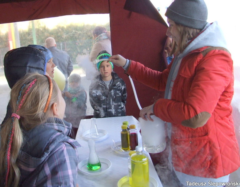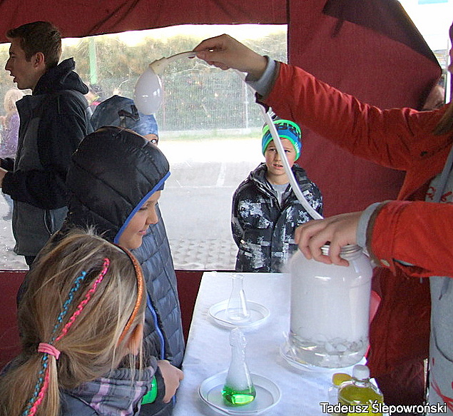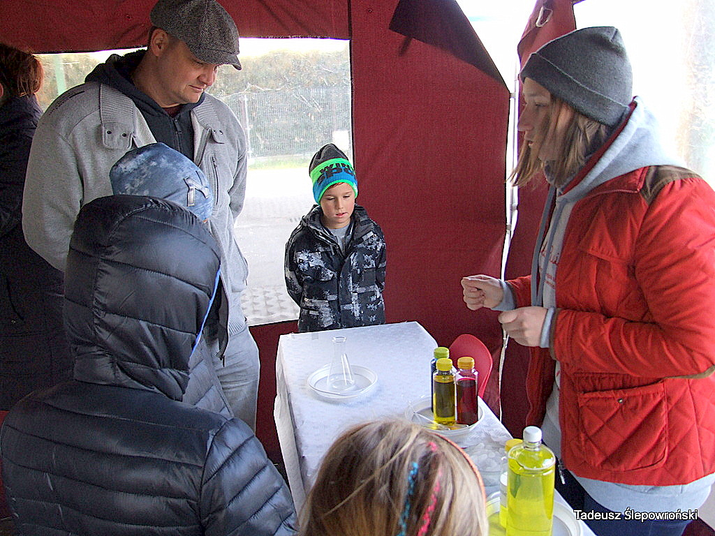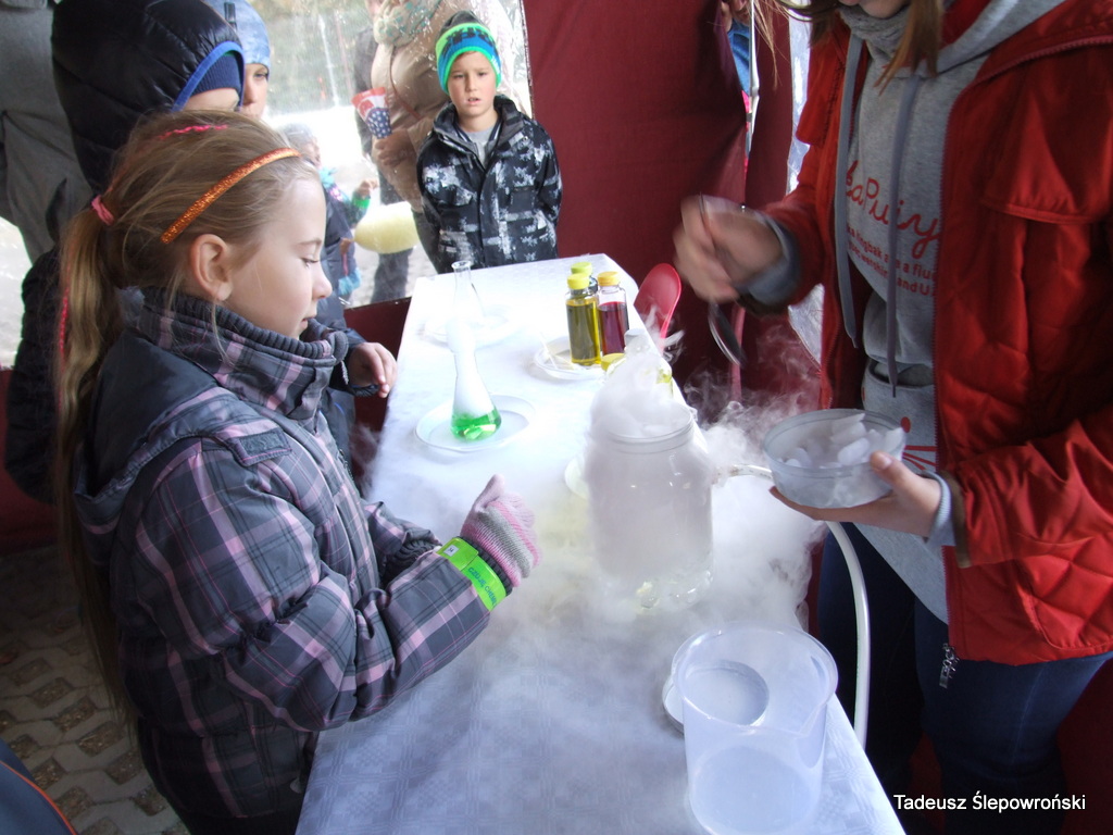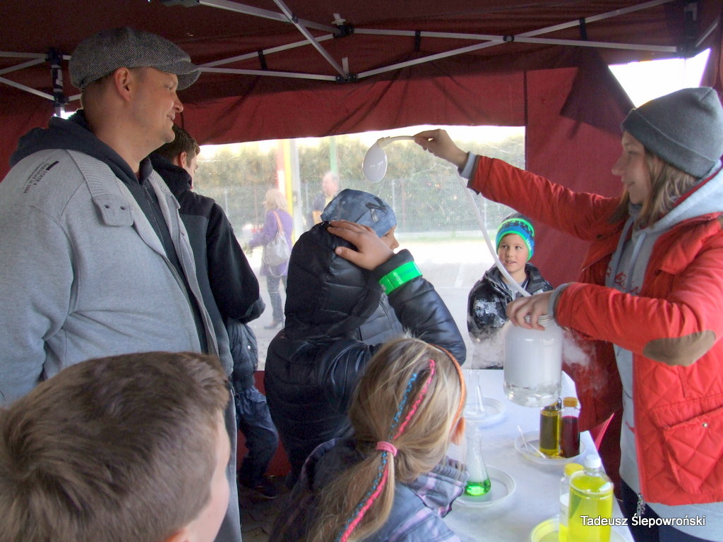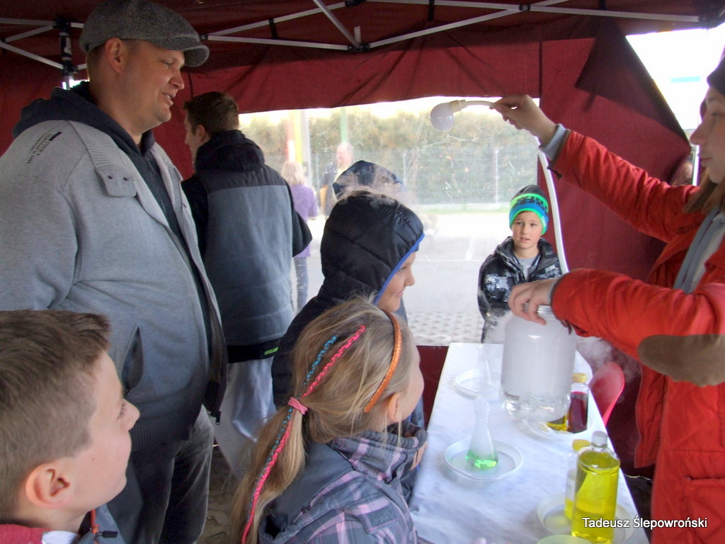 Piknik naukowy Wołomin z DJCHEM 2015-10-23Tadeusz Ślepowroński Fotoreportaż, Kultura, Powiat, Samorząd, Wołomin Po raz drugi odbyło się jesienne spotkanie z chemią – piknik na wołomińskim targowisku podczas którego młodzi wołominiacy mogli doświadczyć chemicznych reakcji. Imprezę zainicjował chemik Bogdan Domagała i wołomińska firma DJCHEM