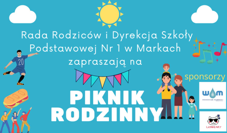 Rada Rodziców oraz Dyrekcja Szkoły Podstawowej nr 1 w Markach zapraszają na piknik rodzinny, który swoim patronatem objął Burmistrz Miasta Marki Jacek Orych.