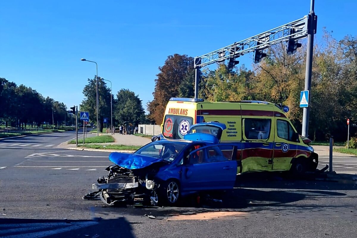 Zderzenie trzech osobówek w Sochaczewie. Dwie osoby trafiły do szpitala.