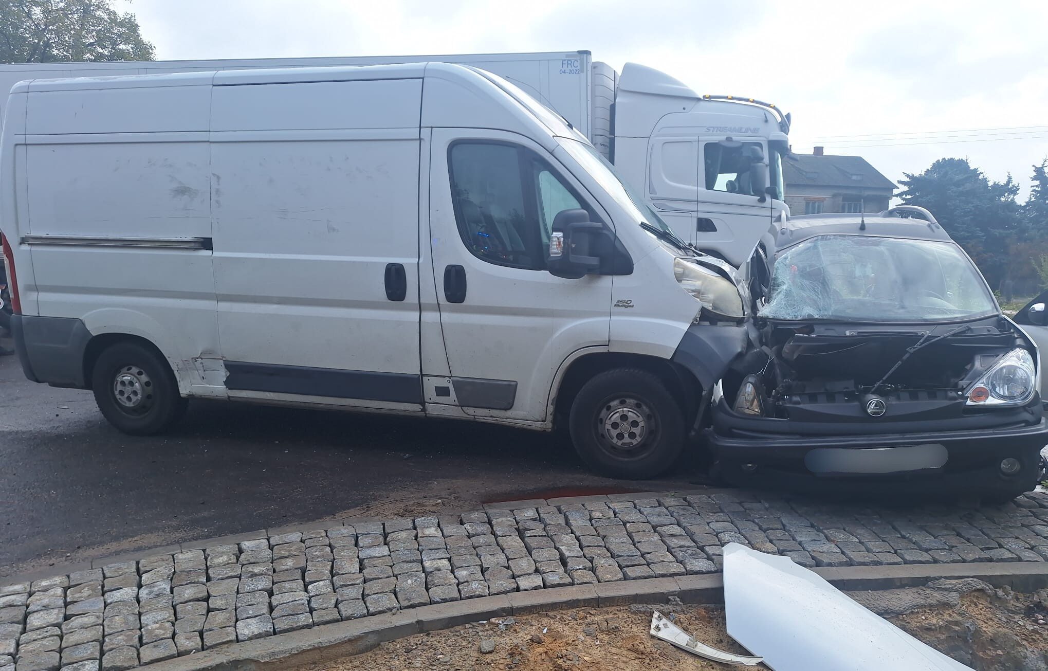 Zderzenie busa przewożącego 9 osób w tym 2 dzieci z samochodem osobowym