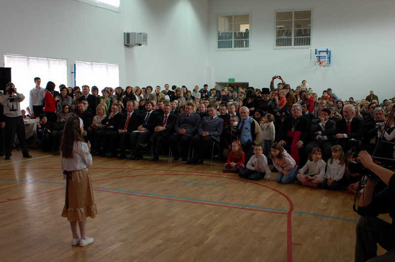 Sobota 1 marca na stałe wpisała się już w historię Zagościńca jako dzień, w którym zakończył się okres budowy szkoły. Do uroczystego oddania obiektu do użytku, przygotowania trwały od miesiąca. Szczególnie intensywne były dwa ostatnie tygodnie. Członkowie Komitetu Budowy Szkoły, rodzice uczących się tu dzieci, grono pedagogiczne – w sumie około 50 osób – pracowało nad wystrojem i doprowadzeniem wszystkiego do porządku. W ostatecznym efekcie oprawa uroczystości oddania do użytku Szkoły w Zagościńcu okazała się sukcesem. Spotkanie rozpoczęła msza święta, którą celebrował biskup Leszek Sławoj Głódź. Później przecięcie wstęgi, poświęcenie obiektu i wreszcie spotkanie na szkolnej hali sportowej, gdzie, oprócz dobrze przygotowanej części artystycznej, przypomniano historię szkoły i perypetie mieszkańców związane z zabieganiem o budowę nowego budynku. A historia ta sięga 1908 roku, kiedy to po raz pierwszy władze carskie pozwoliły na rozpoczęcie działalności szkoły w Zagościńcu, którą niestety po roku zamknięto. Do pomysłu wrócono w 1915 roku i od tej pory powołano w Zagościńcu kilka komitetów budowy szkoły (pełną historię zamieściliśmy na stronie internetowej www.zyciepw.pl). Warto w tym miejscu przypomnieć, że największą darowniznę na rzecz szkoły wnieśli przodkowie dzisiejszych mieszkańców Zagościńca ofiarowując na jej potrzeby grunt wart dziś około 2,5 miliona złotych. Ostatni Komitet Budowy Szkoły w Zagościcu powstał przy współudziale dyrektora szkoły – Jolanty Rasińskiej (dyrektor od 1996 r.) w 1999 roku. Zarząd Komitetu tworzyli: przewodniczący – Marek Górski, zastępca – Henryka Krawczyk, sekretarz – Jolanta Siwerska, skarbnik – Aniela Szczotka, członkowie: Remi Kaleta, Iwona Sasin, Roman Łuniewski, Paweł Rzempołuch, Zbigniew Siwerski. Pozostali Członkowie to: Jolanta Rasińska /dyrektor SP Zagościniec/, Hanna Polak, Agata Jackowicz, Ewa Ludwiniak, Beata Wypych, Katarzyna Żmijewska, Marianna Rudnik, Bożena Rosłon, Katarzyna Grochowska, Bogdan Palesa, Bożena Dzięcioł, Zbigniew Górski, Stanisława Łuniewska, Maria Babicka, Janina Zych, Irena Ludwiniak, Elżbieta Cyrych, Irena Kamińska.
