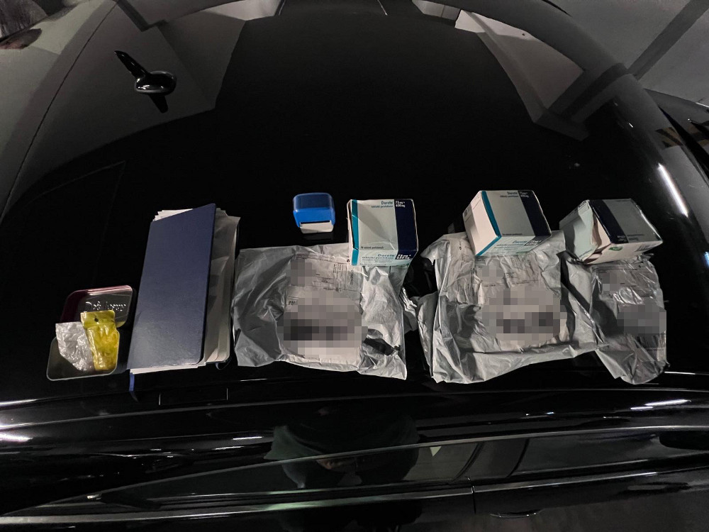 W jednym z pomieszczeń znaleziono również kilkadziesiąt recept z danymi kilku placówek medycznych oraz nazwiskami lekarzy. Wśród zabezpieczonych materiałów znajdowały się również notesy z zapiskami, pieczątki medyczne, bloczki zaświadczeń oraz puste etykiety receptowe.