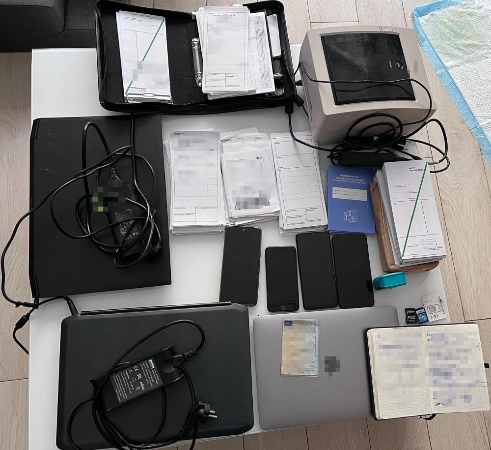 Funkcjonariusze kryminalni z Komendy Powiatowej Policji w Wołominie prowadzili działania operacyjne wobec mężczyzny, który posługiwał się podrobionymi dokumentami w postaci recept. Do zdarzenia doszło na początku lipca tego roku w jednej z aptek na terenie Wołomina. W toku czynności ustalono, że podejrzanym jest 41-letni mężczyzna. W mieszkaniu mężczyzny znaleziono dużą ilość przedmiotów mogących służyć do popełniania przestępstw. Zabezpieczono m.in. kilka laptopów, telefony komórkowe, drukarki, pieczątki lekarskie, niepodpisane druki recept, książeczki zdrowia oraz karty SIM różnych operatorów.