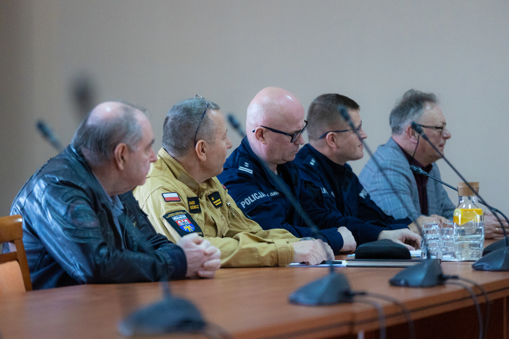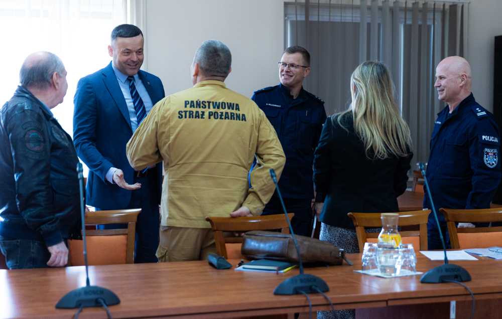 W sali konferencyjnej Starostwa Powiatowego w Wołominie, odbyło się posiedzenie Komisji Bezpieczeństwa i Porządku. W spotkaniu, które prowadził Starosta Wołomiński Pan Arkadiusz Werelich oraz Naczelnik Powiatowego Zespołu Zarządzania Kryzysowego, udział wzięli przedstawiciele Prokuratury Rejonowej w Wołominie, komendant Powiatowy Straży Pożarnej, dyrektor Szpitala Powiatowego w Wołominie, przedstawiciele Rady Powiatu oraz lokalni przedsiębiorcy. Komendę Powiatową Policji w Wołominie reprezentował I Zastępca Komendanta Powiatowego Policji w Wołominie młodszy inspektor Andrzej Oleksiak oraz Zastępca komisarz Sylwester Wojtkiewicz. Funkcjonariusze omówili i podsumowali wyniki wołomińskiej Policji osiągnięte ubiegłego roku, oraz przedstawili zamierzenia na 2025 rok.