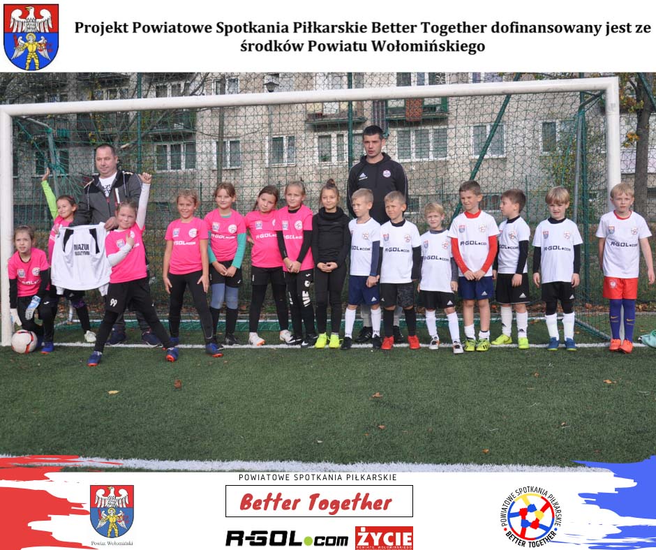 Tworząc przy współudziale Powiatu Wołomińskiego projekt Powiatowych Spotkań Piłkarskich – Better Together chcieliśmy zaprojektować rozgrywki, których głównym celem jest umożliwienie rozwoju młodym, często ?wykluczonym? zawodnikom, poprzez danie im możliwości czerpania radości z gry meczowej i rywalizacji, bez zbędnej presji. W związku z powyższym organizując nasze rozgrywki wprowadziliśmy pewne fundamentalne założenia, tzn. nie publikujemy wyników, tabel, czy klasyfikacji. Staramy się umożliwić pozytywną grę każdemu i każdej, gdyż nasz projekt skierowany jest zarówno do chłopców, jak i dziewczynek.