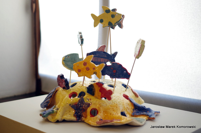 Przez cały ten czas można było oglądać, jak podwodny świat widzą młodzi pasjonaci ceramiki i jak zbliżone widzenie tego tematu jest wśród odwiedzających nas gości. Nasza wystawa zatrzymała się na dłużej spichlerzu w zespole pałacowo-parkowym w Chrzęsnem. Jesteśmy przekonani, że w kolejnych latach z łatwością będziemy rozpoznawali prace wykonane przez naszych adeptów ceramiki na wernisażach ceramicznych w Polsce i na świecie właśnie dlatego, że dziś widzimy jak powstają ich pierwsze prace. Gratulujemy wytrwałości i systematyczności. To ciężka praca, ale efekty są warte tego wysiłku.