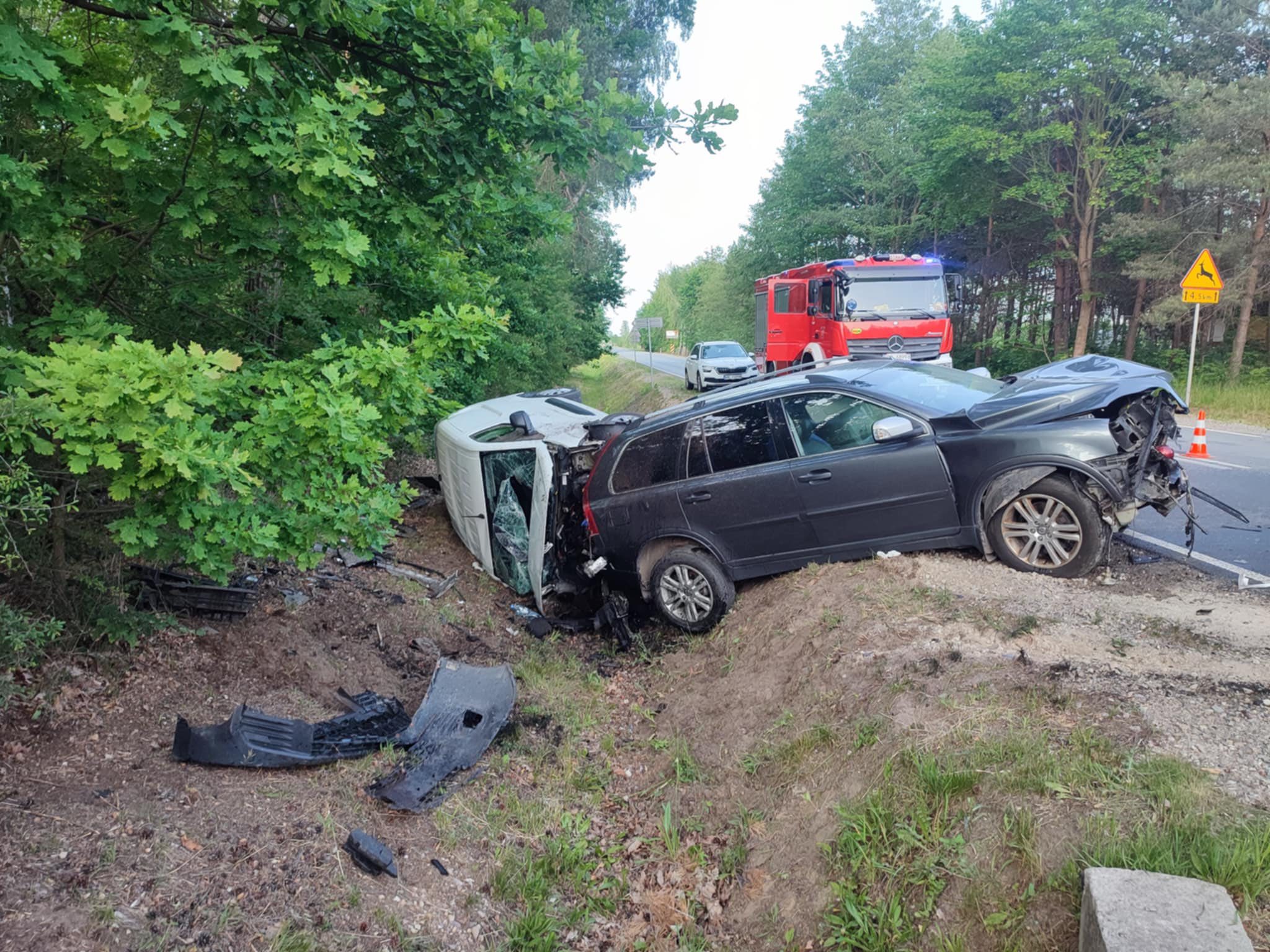 Po przybyciu na miejsce służby zastały poważnie uszkodzone pojazdy oraz dwie osoby wymagające pomocy medycznej. Strażacy zabezpieczyli miejsce wypadku oraz pomogli poszkodowanym. Po udzieleniu pierwszej pomocy przez ZRM, osoby te zostały przetransportowane do szpitala