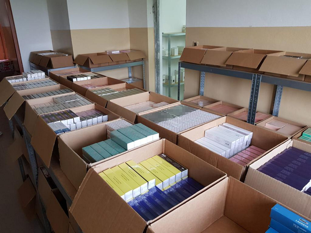 Dwa magazyny z kosmetykami, odzieżą, zegarkami, biżuterią i perfumami z nielegalnie naniesionymi zastrzeżonymi znakami towarowymi znanych światowych marek zlikwidowali w powiecie piaseczyńskim i grójeckim funkcjonariusze z wołomińskiej Komendy, stołecznego wydziału odzyskiwania mienia i Mazowieckiego Urzędu Celno-Skarbowego. Zarzuty wprowadzanie do obrotu wyrobów z naniesionymi zastrzeżonymi znakami towarowymi zgodnie z Ustawą prawo własności usłyszało już dwóch mężczyzn, 40-letni obywatel Ukrainy i 20-letni obywatel Armenii. Jak ustalili funkcjonariusze wartość rynkowa zabezpieczonego mienia wynosi blisko 10 mln złotych.