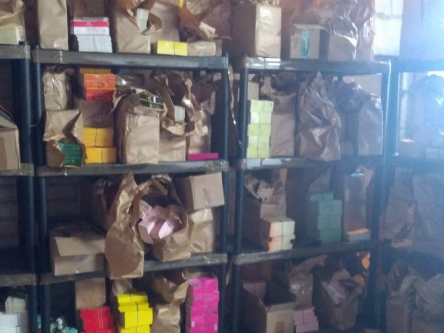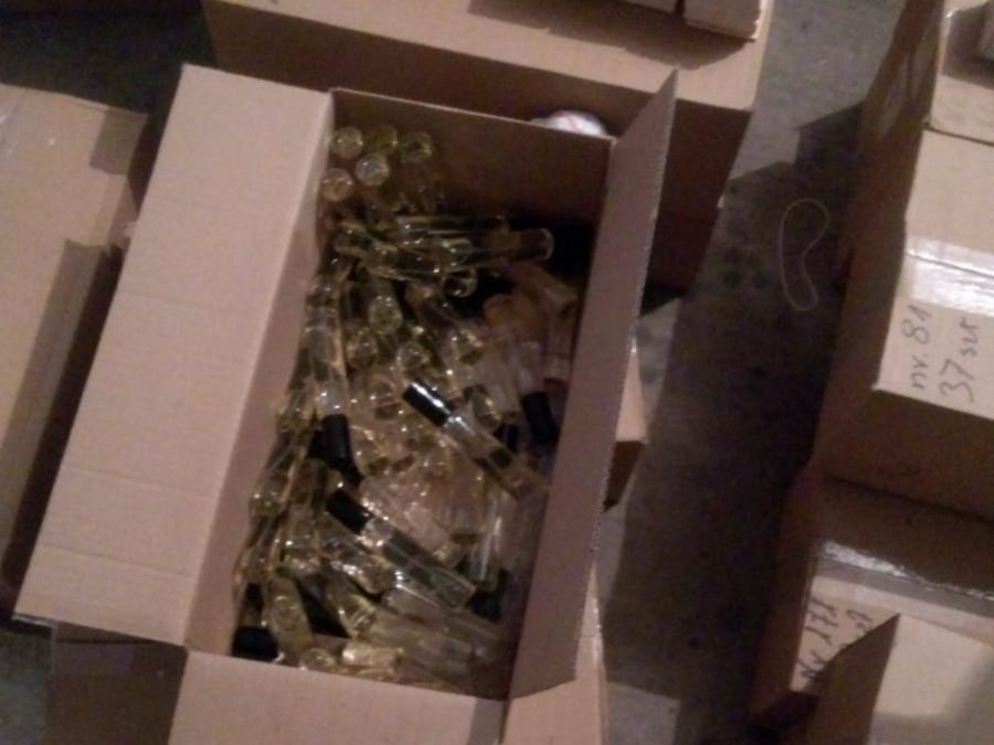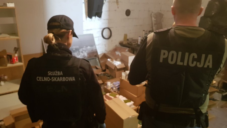 Podczas przeszukania budynku gospodarczego policjanci i funkcjonariusze KAS zabezpieczyli 27 000 sztuk fiolek perfum o pojemności 33 ml, 720 sztuk o pojemności 100 ml, 3 000 sztuk odzieży, 1 200 sztuk par skarpet, 176 sztuk zegarków bezprawnie oznaczonych znakami towarowymi znanych, światowych firm, o łącznej wartości blisko 4,5 mln zł.