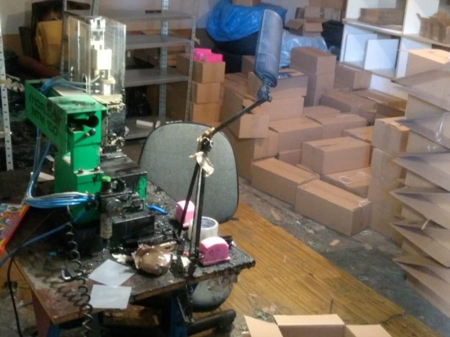 W toku dalszych czynności prowadzonych na terenie powiatu grójeckiego mundurowi, w wynajmowanej przez zatrzymane osoby hali, ujawnili kompletną linię produkcyjną służącą do wytwarzania opakowań do podrobionych perfum, w tym 283 sztuki blaszanych matryc wykorzystywanych do nanoszenia zastrzeżonych znaków towarowych oraz 17 446 sztuk gotowych fiolek perfum o pojemności 33 ml o rynkowej wartości 2,3 mln złotych.