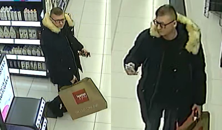 Mężczyzna jest w wieku około 35-40 lat, wysokiego wzrostu, miał przeciętną budowę ciała, włosy krótkie ciemne, okulary korekcyjne; ubrany był w długą, zimową i ciemną kurtkę z futrzanym obszyciem, ciemnoniebieskie spodnie jeansowe, czarne buty zimowe; posiadał papierową torbę z napisem „Home&You”.