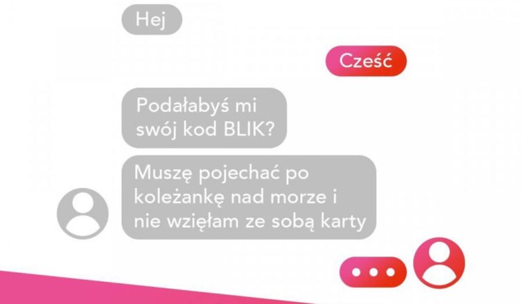 Komenda Główna Policji i Polski Standard Płatności ostrzegają przed wyłudzaniem pieniędzy przez osoby podszywające się pod znajomych w mediach społecznościowych. Kiedy ktoś pisze przez internetowy komunikator, że potrzebuje szybkiej pomocy finansowej i prosi o podanie kodu do płatności mobilnych (BLIK), należy zachować szczególną ostrożność.