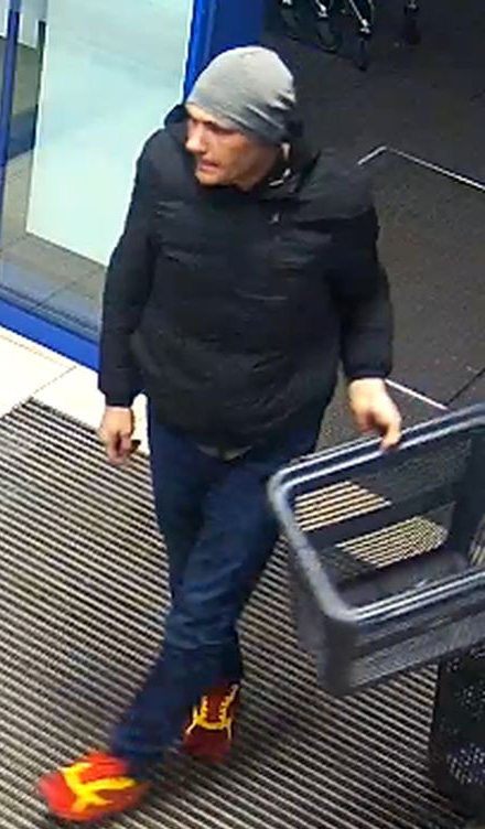 Mężczyzna jest w wieku około 35 lat, ma około 190 cm wzrostu, przeciętną budowę ciała; ubrany był w ciemnoniebieską kurtkę, niebieskie jeansy, sportowe czerwone buty z żółtymi obszyciami, szarą materiałową czapkę.