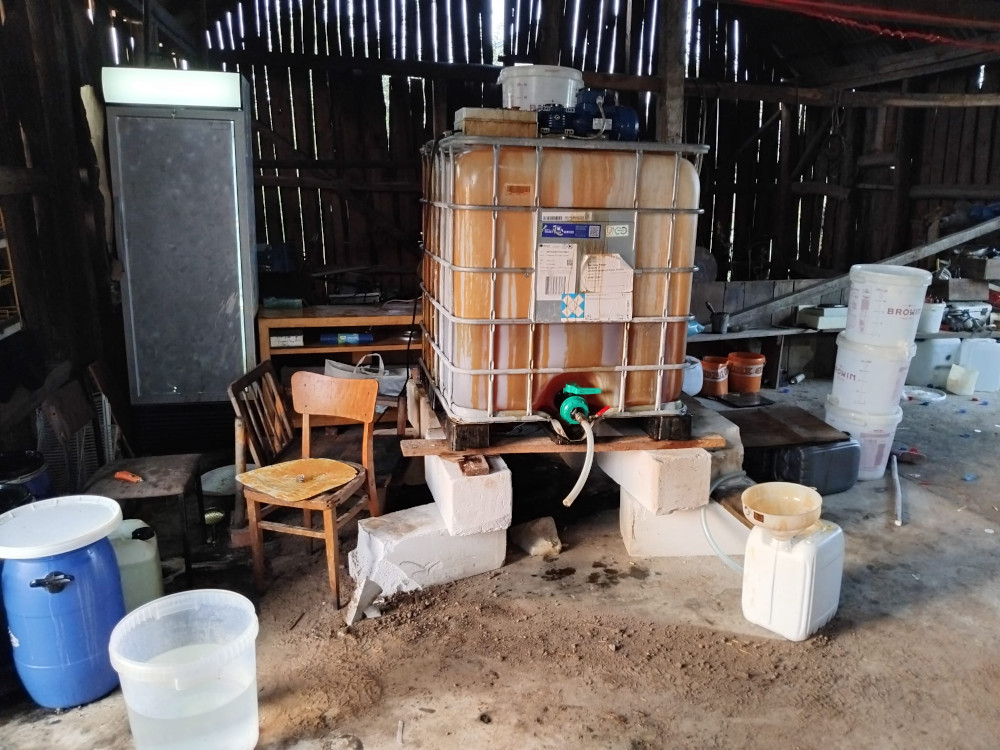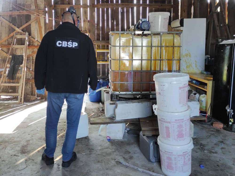 We wczesnych godzinach porannych policjanci weszli na teren jednej z posesji, gdzie w stodole w specjalnie przygotowanym laboratorium dobiegał końca proces produkcji narkotyków syntetycznych, a dokładnie klefedronu (4-CMC).