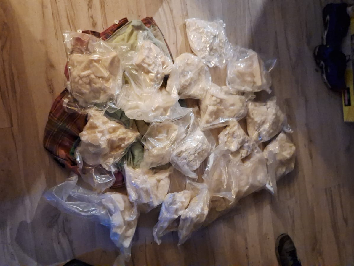 Kryminalni zabezpieczyli 420 litrów cieczy zawierającej 4-CMC oraz ponad 3 kilogramy gotowej już substancji psychotropowej w postaci klefedronu. Ponadto policjanci zabezpieczyli elementy laboratorium, w tym pojemnik typu „mauzer”, zaadaptowany na reaktor, znaczne ilości półproduktów potrzebnych do wytworzenia narkotyków, przedmioty osobiste zatrzymanych oraz pieniądze.