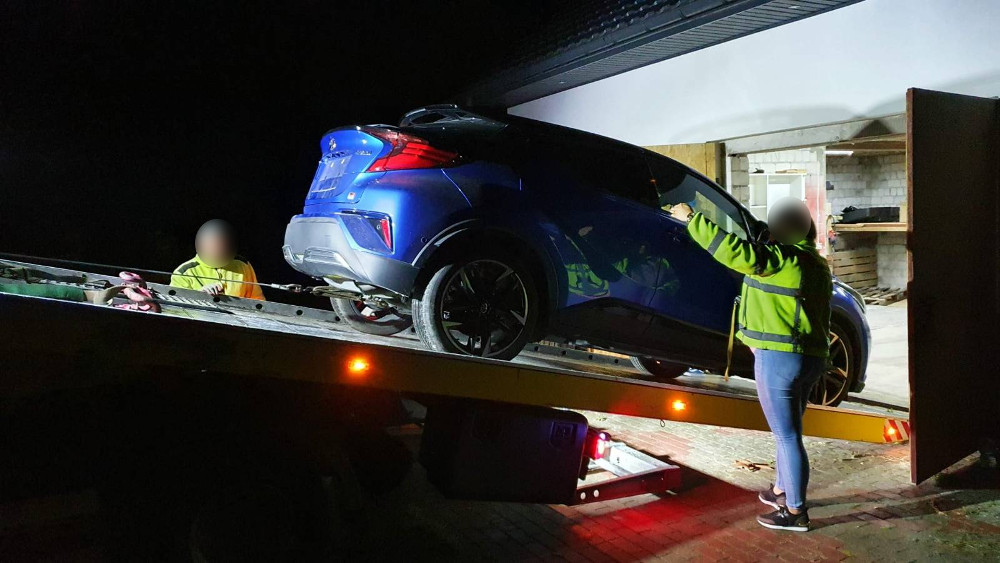 Odzyskana toyota o wartości ponad 130 tys. złotych po oględzinach została zabezpieczona i trafiła na parking depozytowy.