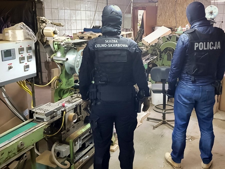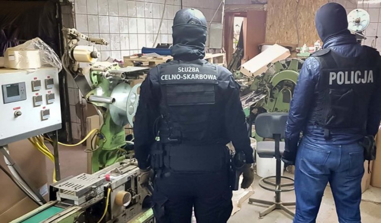 Policjanci z Wydziału do Walki z Przestępczością Gospodarczą i Korupcją z Wołomina oraz CBŚP Zarządu w Białymstoku i funkcjonariusze z Podlaskiego Urzędu Celno-Skarbowego w Białymstoku ustalili, że w jednej z miejscowości w gminie Jadów w powiecie wołomińskim funkcjonuje fabryka, w której nielegalne są produkowane i pakowane papierosy. Mundurowi przy wsparciu Samodzielnego Pododdziału Antyterrorystycznego Policji w Białymstoku wkroczyli do hali znajdującej się na terenie wytypowanej wcześniej posesji, likwidując przestępczy proceder.