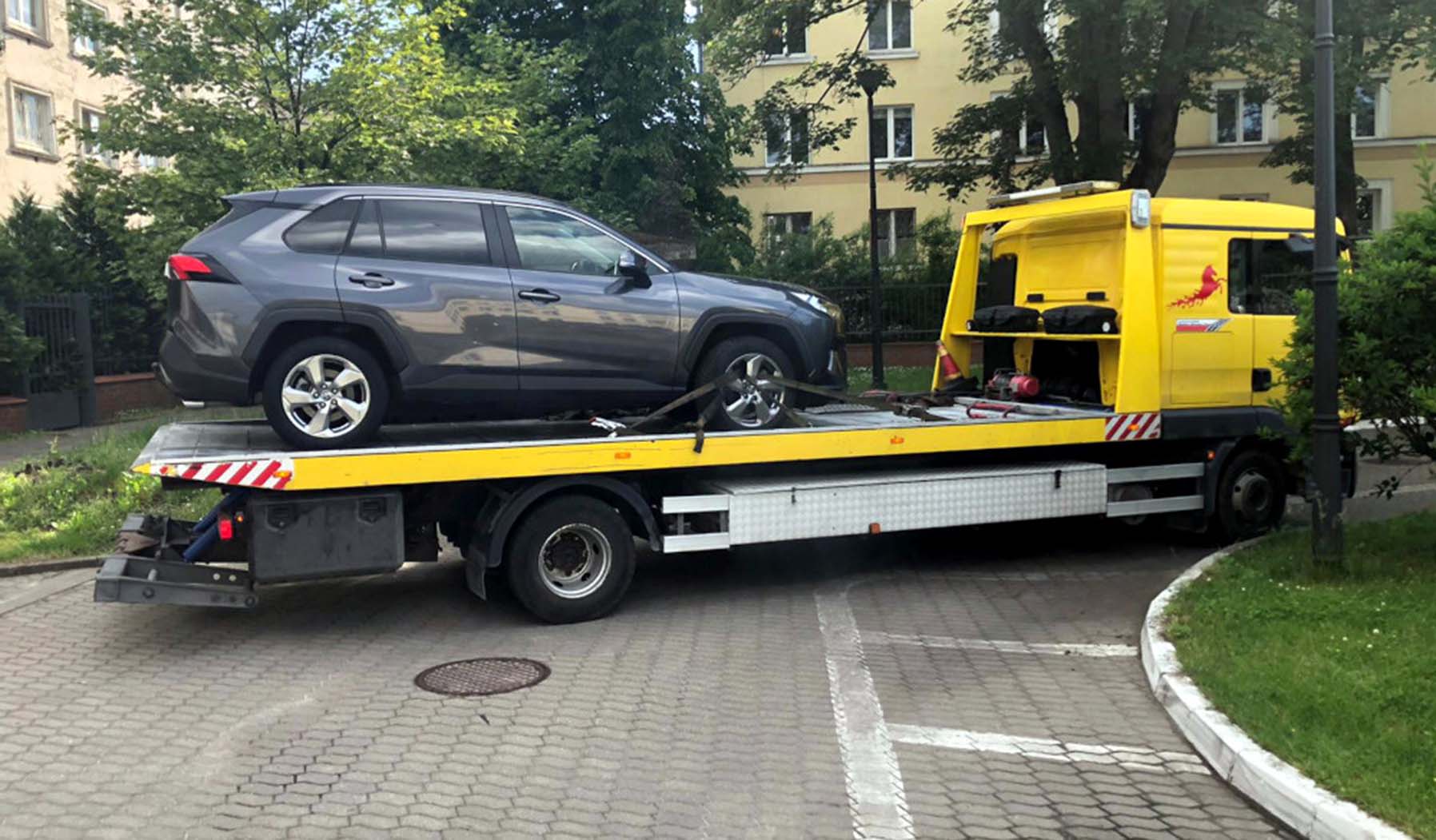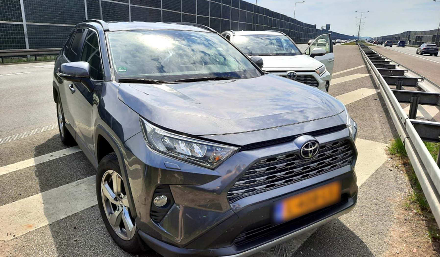 W tym samym czasie inni policjanci stołecznej samochodówki na autostradzie A4 na wysokości Legnicy zauważyli granatową Toyotę RAV 4 na holenderskich tablicach rejestracyjnych. Za kierownicą samochodu siedział będący w ich zainteresowaniu 42-latek. Policjanci jechali za toyotą. Zatrzymali kierowcę w okolicach Kępna, kiedy ten zjechał na stację paliw. Po sprawdzeniu tablic rejestracyjnych pojazdu okazało się, że toyota figuruje jako utracona w wyniku kradzieży na terenie Holandii. Samochód trafił na parking depozytowy, natomiast mężczyzna okazał się być osobą poszukiwaną, a także mającą aktywny zakaz prowadzenia wszelkich pojazdów mechanicznych do marca 2027 roku. Ponadto był w przeszłości wielokrotnie poszukiwany i zatrzymywany przez Policję, odbył też wieloletnie kary pozbawienia wolności.