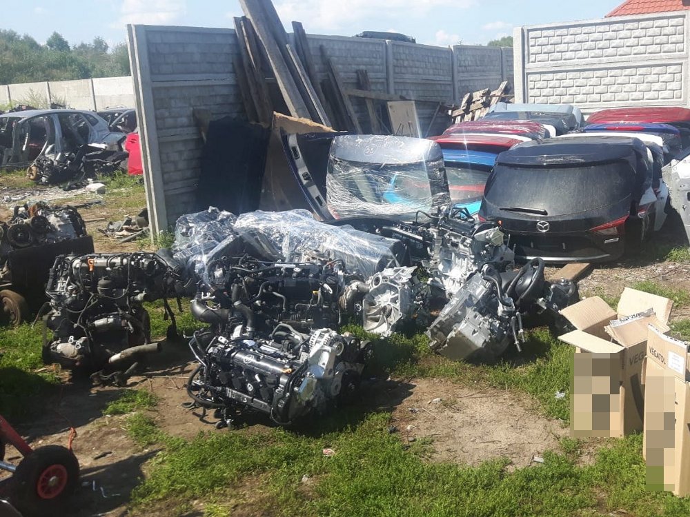 Na terenie posesji jak i w budynkach gospodarczych znajdowały się dodatkowo, liczne elementy wyposażenia pojazdów posiadające numery nadające się do identyfikacji miedzy innymi: 32 poduszki powietrzne, 6 silników, 3 skrzynie biegów pochodzące głownie z samochodów japońskich a także pokrywa bagażnika pojazdu ford, kolumna kierownicy wraz z poduszką powietrzną oraz komplety pasów bezpieczeństwa i przetwornica do silników hybrydowych. Wszystkie te elementy zostały zabezpieczone przez kryminalnych.