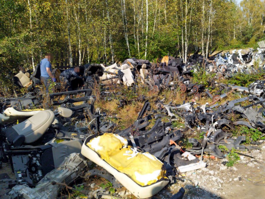 W wyniku przeprowadzonych czynności pomiędzy porozrzucanymi podzespołami funkcjonariusze Straży Granicznej ujawnili wycięte elementy karoserii zawierające numery VIN, które po sprawdzeniu w policyjnych bazach danych okazały się pochodzić z kradzionych samochodów. Policjanci zabezpieczyli do dalszych badań zarówno ujawnione elementy karoserii, jak również ponad 200 innych części samochodowych. Wartość zabezpieczonych do badań części jest szacowana na kwotę około 970 tysięcy złotych.
