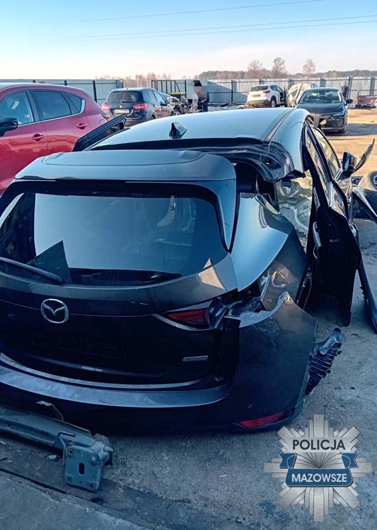 Na posesji oraz w garażach policjanci zabezpieczyli mazdę CX-5, która pochodziła z kradzieży. Konstrukcja jej ramy pojazdu nosiła ślady ingerencji w pole numerowe vin. Kolejna mazda była już zdekompletowana. Zabezpieczono także wiele części samochodowych, niektóre z nich miały również już usunięte numery vin. W czynnościach brali udział także policjanci z Wydziału Dochodzeniowo-Śledczego KWP zs. w Radomiu i KMP w Ostrołęce.