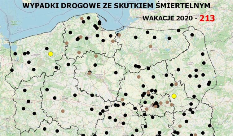 W ciągu ostatniej doby w wypadkach drogowych zginęło 6 osób. Od początku wakacji ofiar śmiertelnych na drogach naszego kraju było 213. Policja prezentuje kolejną dramatyczną odsłonę Mapy Wypadków Drogowych.