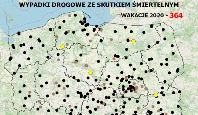 Należy mieć na uwadze, że za każdym punktem zaznaczonym na tej mapie, kryje się ludzka tragedia. Każde, nawet z pozoru błahe zignorowanie przepisów, w tym nadmierna prędkość, brawura, zlekceważenie senności czy zmęczenia mogą być przyczyną tragedii na drodze.