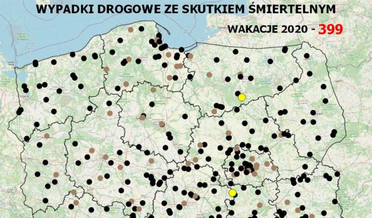 Mapa Wypadków Drogowych ze skutkiem śmiertelnym ? Wakacje 2020 będzie codziennie wyświetlana, przez okres wakacji, na ekranach firmy Screen Network, znajdujących się na terenie kraju, w oparciu o aktualne dane przekazywane bezpośrednio z Biura Ruchu Drogowego Komendy Głównej Policji.