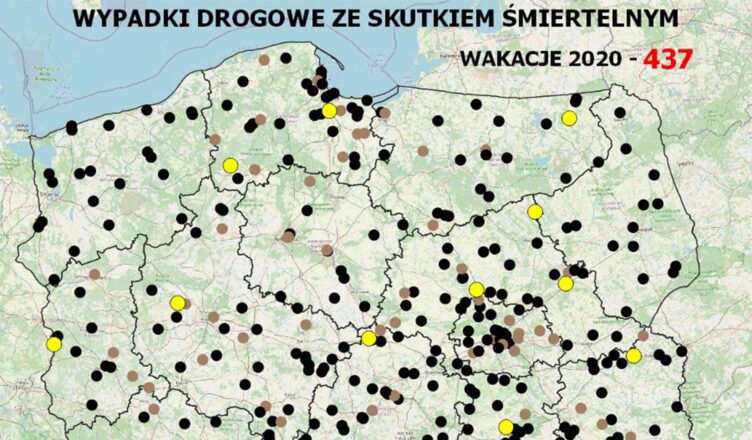 Należy mieć na uwadze, że za każdym punktem zaznaczonym na tej mapie, kryje się ludzka tragedia. Każde, nawet z pozoru błahe zignorowanie przepisów, w tym nadmierna prędkość, brawura, zlekceważenie senności czy zmęczenia mogą być przyczyną tragedii na drodze.