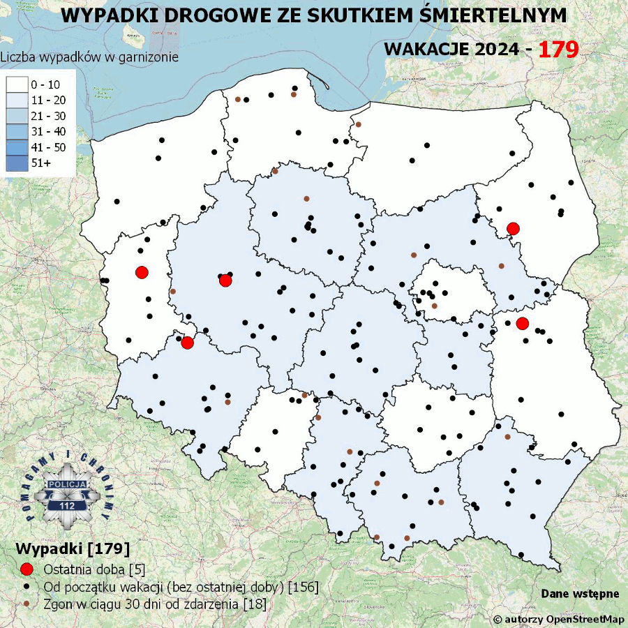 Podobnie jak w latach ubiegłych, każdego dnia, przez okres wakacji, na stronie policja.pl, w mediach społecznościowych oraz na stronach administrowanych przez jednostki Policji, prezentowana jest mapa Polski z liczbą wypadków drogowych ze skutkiem śmiertelnym wraz z informacją o zdarzeniu (tj. lokalizacja zdarzenia, ogólna informacja dot. liczby ofiar, rodzaju uczestnika ruchu drogowego oraz rodzaju zdarzenia) z ostatniej doby oraz od początku wakacji.