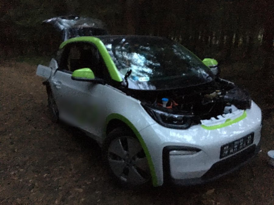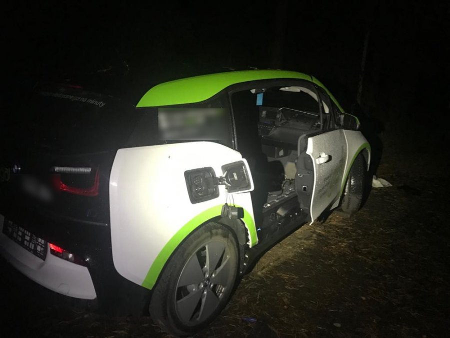 Po sprawdzeniu w systemach informacyjnych Policji funkcjonariusze potwierdzili, że samochód pochodził z kradzieży. Obok pojazdu leżała już zdemontowana maska, pokrywa silnika, drzwi i siedzenia.