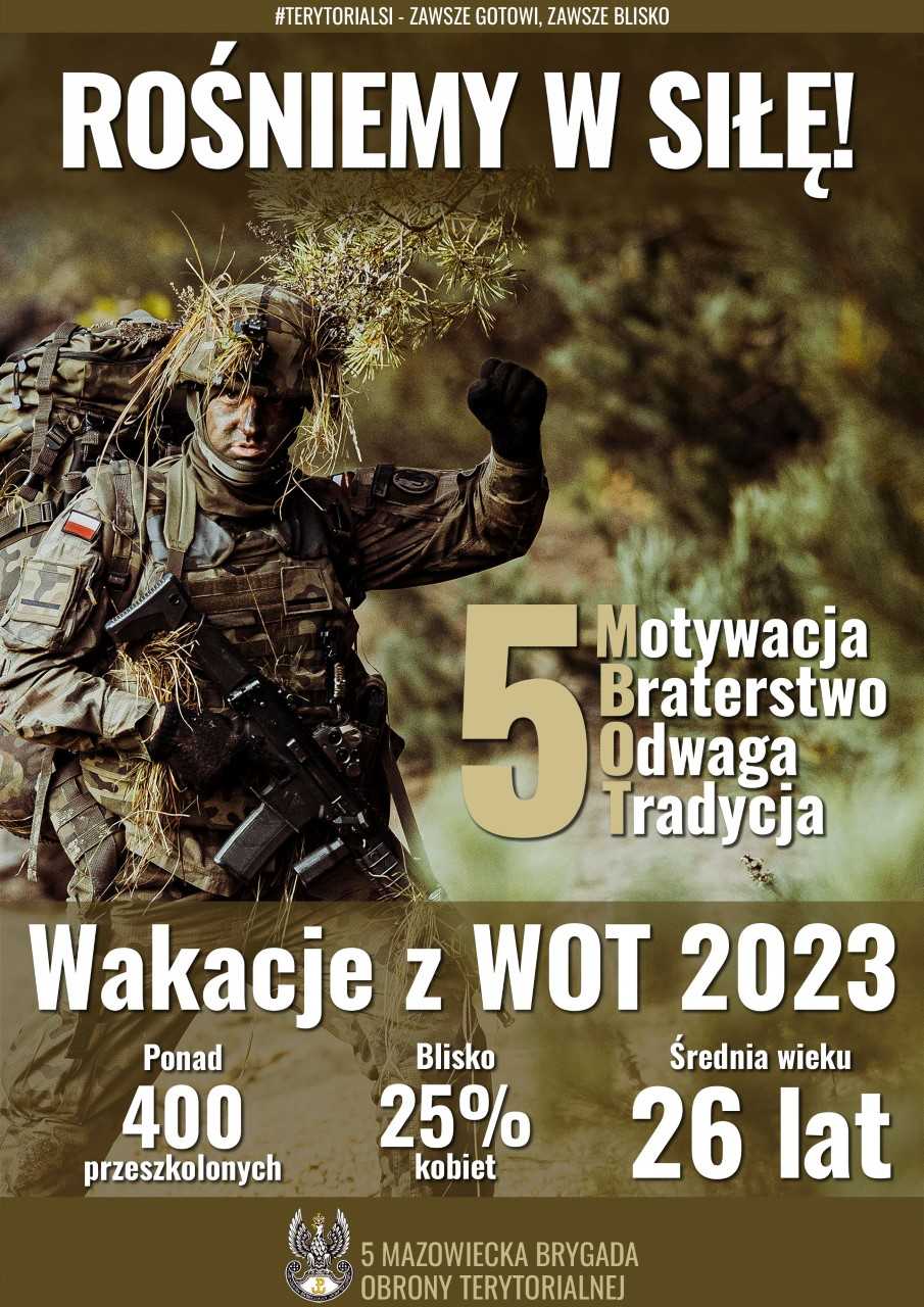Obecnie w szeregach Wojsk Obrony Terytorialnej jest ponad 38 tysięcy żołnierzy, z czego ponad 2400 stanowią żołnierze 5 Mazowieckiej Brygady Obrony Terytorialnej.