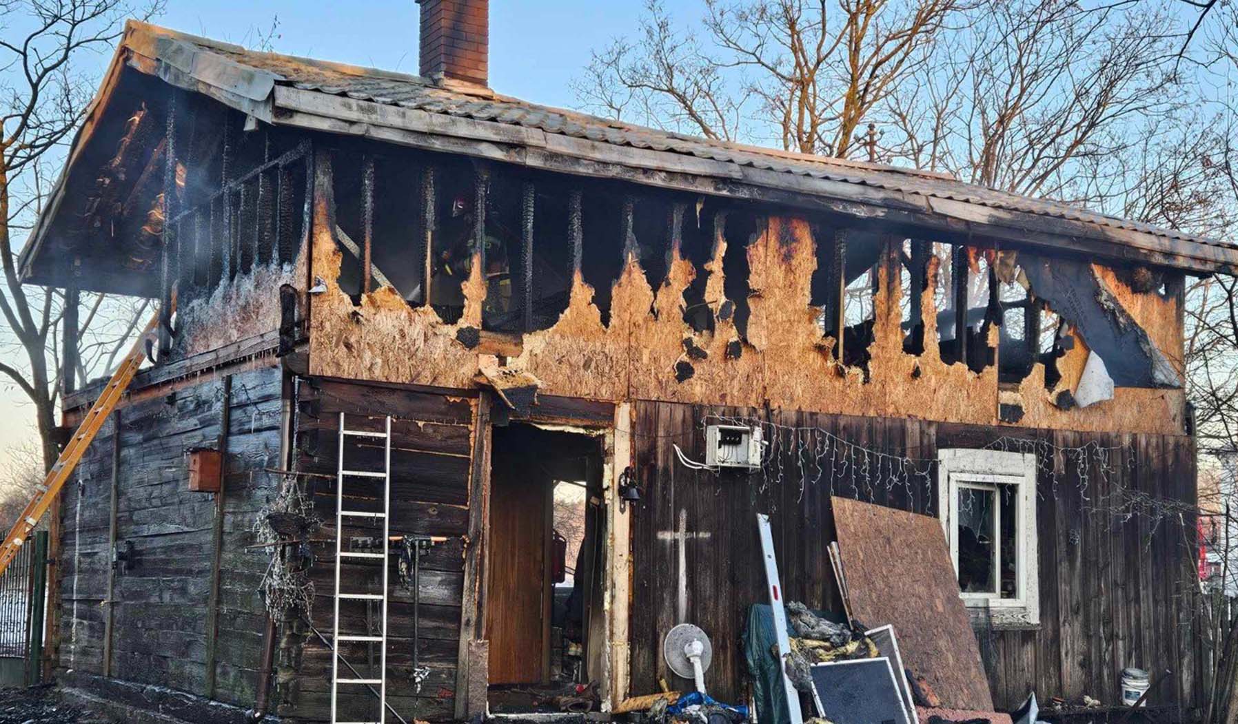 Bardzo rozwinięty pożar nie pozwał od razu wejść do środka budynku. Oprócz ognia i dymu groziło nagłe zawalenie się dachu, co groziło bezpośrednio bezpieczeństwu ratowników. Po wstępnym opanowaniu pożaru, pierwszej rocie wyposażonej w aparaty oddechowe udało się wejść do środka i przeszukać pomieszczenia. Na szczęście po sprawdzeniu okazało się, że w domu nie było ludzi. W budynku znajdowały się psy, którym strażacy uratowali życie. Niestety straty materialne były już poważne. Spaliła się cała, góra, ściany oraz drewniana konstrukcja. Mieszkająca tam rodzina straciła swoje rzeczy osobiste i przede wszystkim dach nad głową. Nie wiadomo póki co jaka była przyczyna pożaru, w domu jednak od dłuższego czasu trwały prace modernizacyjne. Rodzina aktualnie zamieszkuje w barakowozie.