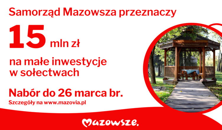 Ważna informacja dla sołectw i sołtysów. Właśnie ruszył nabór do Mazowieckiego Instrumentu Aktywizacji Sołectw MAZOWSZE. To okazja, aby zyskać środki z budżetu województwa na modernizację oświetlenia, rewitalizację skwerów, remont świetlic wiejskich czy rozwój twórczości folklorystycznej. Tylko w zeszłym roku z pomocy samorządu województwa skorzystało ponad 1000 sołectw. W tym roku w puli jest ponad 15 mln zł. Wnioski można składać do 26 marca br.