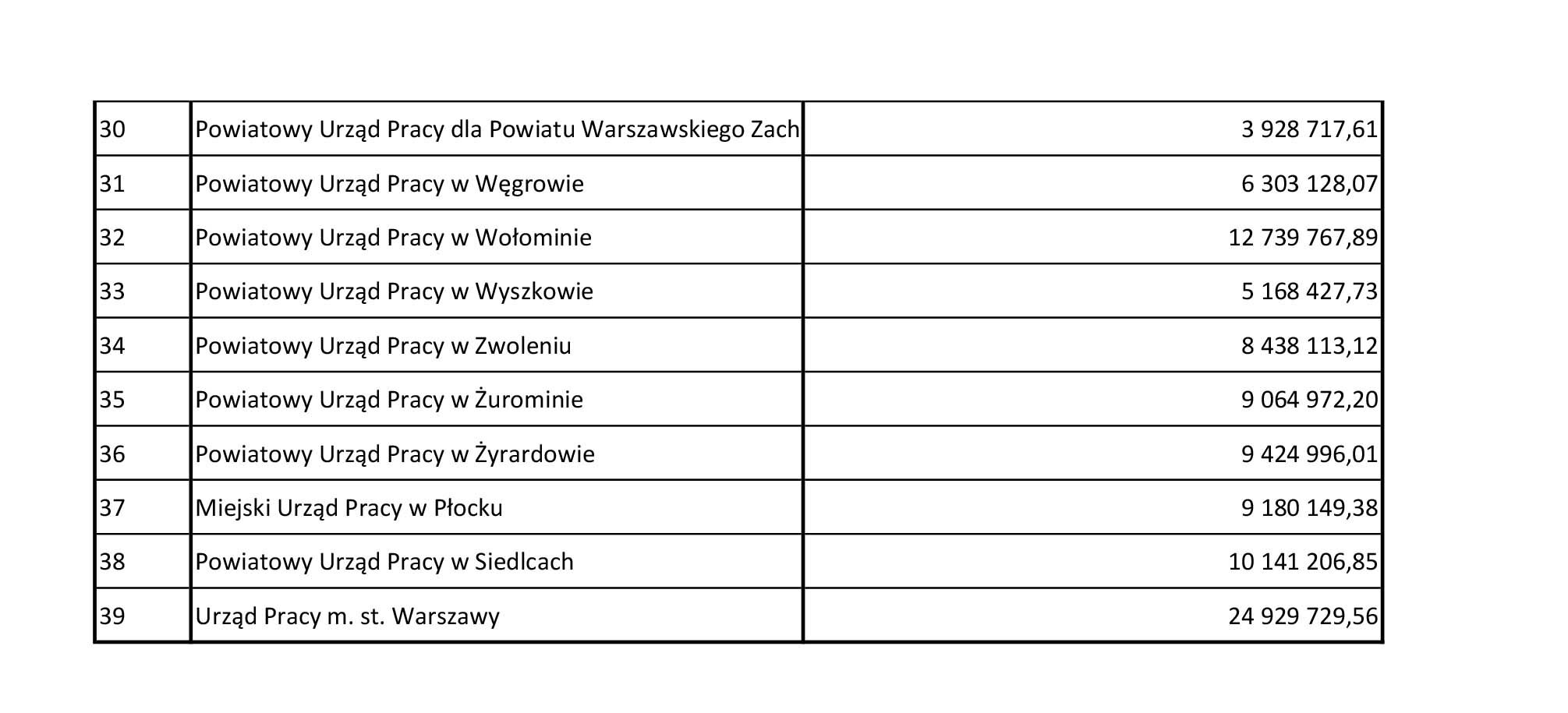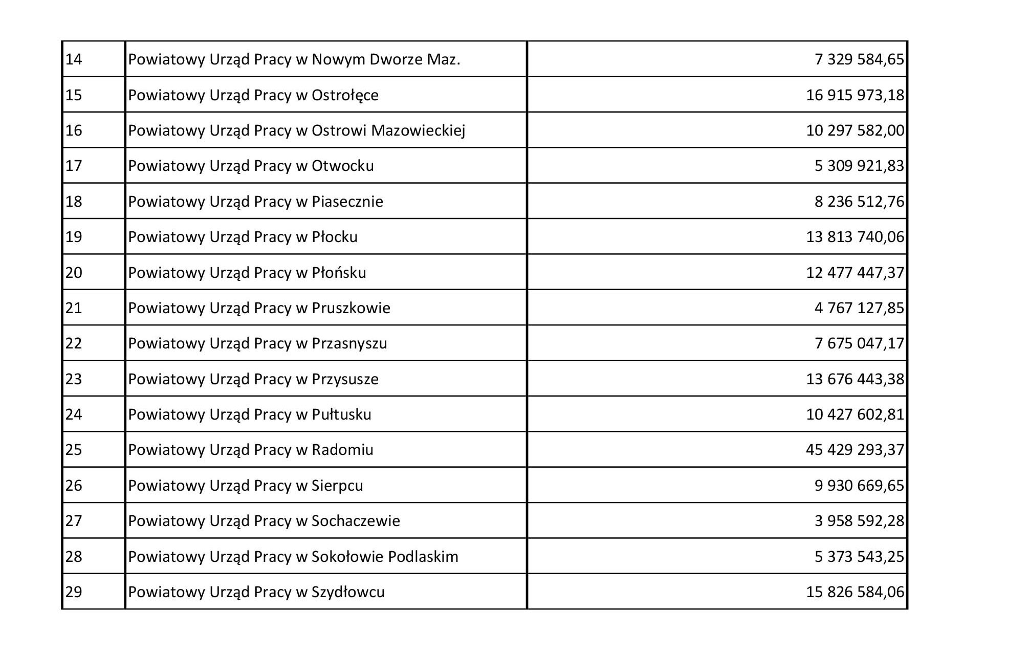 Na podstawie propozycji Wojewódzkiego Urzędu Pracy w Warszawie Zarząd Województwa Mazowieckiego podzielił te środki między poszczególne powiatowe urzędy pracy w regionie. – Wysokość otrzymanych funduszy, zależała między innymi od tego, ile osób nie ma pracy w danym powiecie, ile jest tam osób długotrwale bezrobotnych, ile z wykształceniem poniżej średniego czy zamieszkałych na wsi – wyjaśnia marszałek województwa mazowieckiego Adam Struzik.