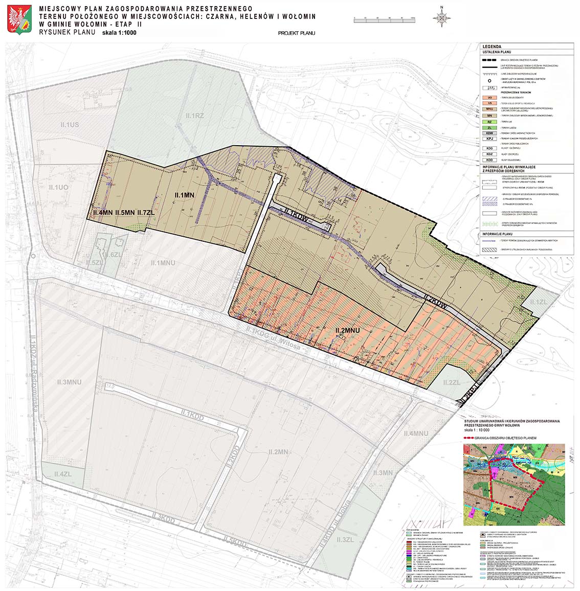 UWAGA! Ponowne wyłożenie ww. projektu dotyczy wyłącznie nowoprojektowanych dróg wewnętrznych II.1KDW i II.2KDW, terenów II.1MN i II.2MNU w zakresie ustalonych linii zabudowy oraz zmian w tekście projektu miejscowego planu w zakresie maksymalnej intensywności zabudowy dla terenów II.1MN, II.2MN, II.3MN, II.1MNU, II.2MNU, II.3MNU i II.4MNU.